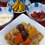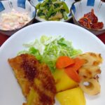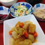 2025年9月22日 / 最終更新日時 : 2025年9月22日 kappa3bell 今日のお昼ごはん鶏肉、さつま揚げと根菜の煮物、大学芋風甘煮、小松菜と豆腐の味噌汁、選べる小鉢(マカロニサラダor赤かっぱ漬け) 鶏肉、さつま揚げと根菜の煮物大学芋風甘煮小松菜と豆腐の味噌汁選べる小鉢(マカロニサラダor赤かっぱ漬け)