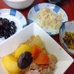 2025年9月24日 / 最終更新日時 : 2025年9月26日 kappa3bell 今日のお昼ごはん鶏肉の根菜煮、ツナサラダ、キャベツとわかめの味噌汁、選べる小鉢(高菜漬けor黒豆) 鶏肉の根菜煮ツナサラダキャベツとわかめの味噌汁選べる小鉢(高菜漬けor黒豆)