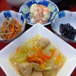 2025年11月12日 / 最終更新日時 : 2025年11月12日 kappa3bell 今日のお昼ごはん鶏肉とキャベツのトマト煮、南瓜と薩摩芋の甘煮、玉ねぎと玉子のスープ(春雨入り)、選べる小鉢「さくら漬けor黒豆」 鶏肉とキャベツのトマト煮南瓜と薩摩芋の甘煮玉ねぎと玉子のスープ(春雨入り)選べる小鉢「さくら漬けor黒豆」