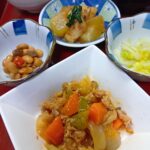 2024年1月5日 / 最終更新日時 : 2024年1月5日 kappa3bell 今日のお昼ごはん大根とじゃがいものそぼろあんかけ、もやしときゅうりの甘酢和え、玉ねぎとわかめのみそ汁、3点盛り(黒豆·きんとん·しば漬け) 大根とじゃがいものそぼろあんかけもやしときゅうりの甘酢和え玉ねぎとわかめのみそ汁3点盛り(黒豆·きんとん·しば漬け)
