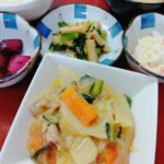 2026年2月22日 / 最終更新日時 : 2026年2月22日 kappa3bell 今日のお昼ごはん豚肉と大根、小松菜の胡麻味噌炒め、里芋とかぼちゃのサラダ、キャベツと揚げの味噌汁、選べる小鉢(うぐいす豆or赤かっぱ漬け) 豚肉と大根、小松菜の胡麻味噌炒め里芋とかぼちゃのサラダキャベツと揚げの味噌汁選べる小鉢(うぐいす豆or赤かっぱ漬け)