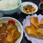 ごはん お味噌汁 アジフライ ポテトサラダ ソーセージとパプリカの炒め物