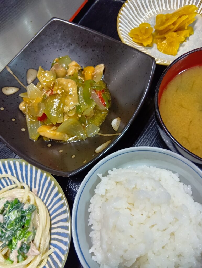 2025年11月12日 / 最終更新日時 : 2025年11月12日 momoi3choume3bell 今日のお昼ごはん ご飯 お味噌汁 肉野菜炒め ツナと菜の花のサラダパスタ 壺漬けFacebookXBlueskyHatenaCopy