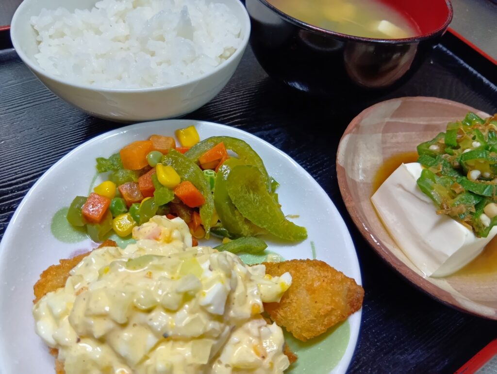 2025年11月21日 / 最終更新日時 : 2025年11月21日 momoi3choume3bell 今日のお昼ごはん 白身魚のフライタルタルソース オクラ冷奴 ミックスベジタブルとピーマンのバター醤油炒め 味噌汁 ご飯FacebookXBlueskyHatenaCopy