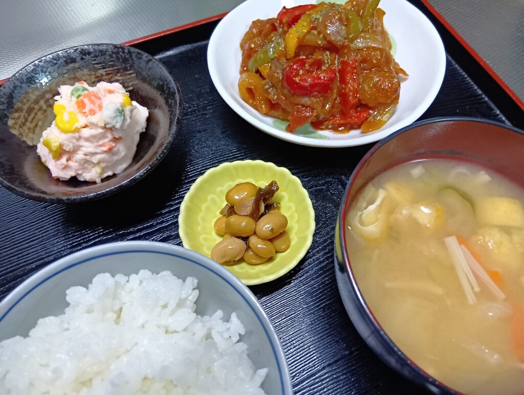 2025年12月5日 / 最終更新日時 : 2025年12月5日 momoi3choume3bell 今日のお昼ごはん チキンとナスのトマト煮込み タラモサラダ 大豆うま煮 ご飯 味噌汁FacebookXBlueskyHatenaCopy