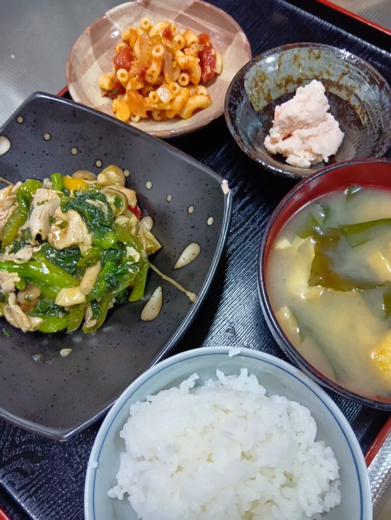 2025年12月10日 / 最終更新日時 : 2025年12月10日 momoi3choume3bell 今日のお昼ごはん ご飯 お味噌汁 タラモサラダ トマトマカロニ 菜の花炒めFacebookXBlueskyHatenaCopy