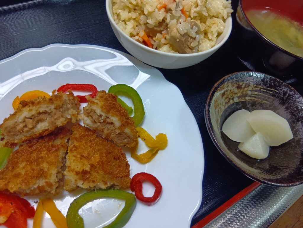 2025年12月25日 / 最終更新日時 : 2025年12月25日 momoi3choume3bell 今日のお昼ごはん メンチカツ パプリカのコンソメ炒め 蕪の煮物 鶏の炊き込み御飯 味噌汁FacebookXBlueskyHatenaCopy