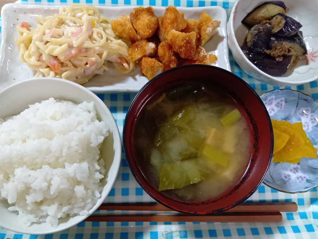 2026年1月6日 / 最終更新日時 : 2026年1月6日 momoi3choume3bell 今日のお昼ごはん ごはん 味噌汁 チキンカツ パスタサラダ 漬け物 茄子の煮浸しFacebookXBlueskyHatenaCopy
