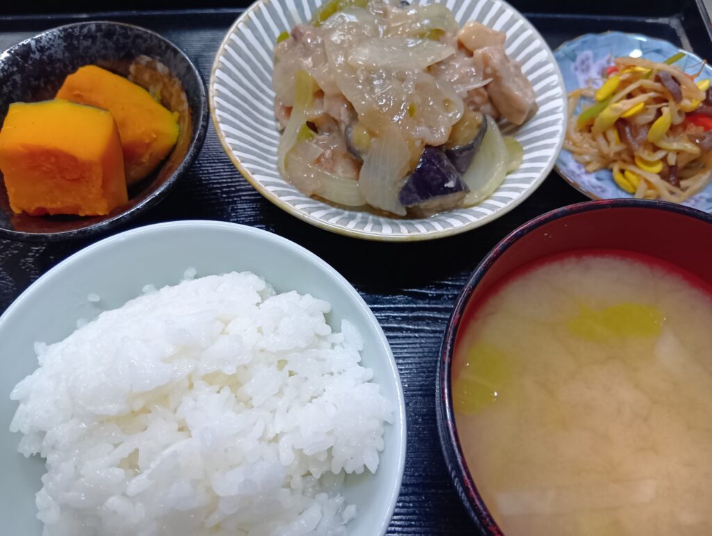 2026年1月11日 / 最終更新日時 : 2026年1月11日 momoi3choume3bell 今日のお昼ごはん ご飯 味噌汁 茄子とチキンの甘酢炒め カボチャ煮 ナムルFacebookXBlueskyHatenaCopy