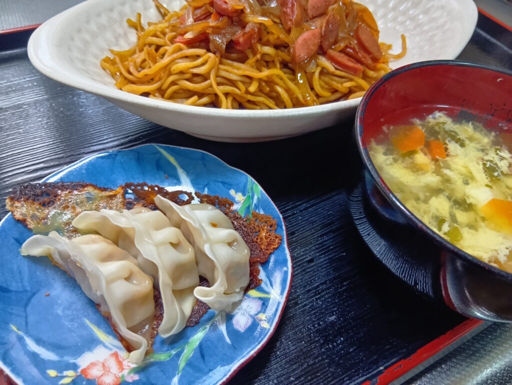 • 焼きそば 餃子 かき玉汁