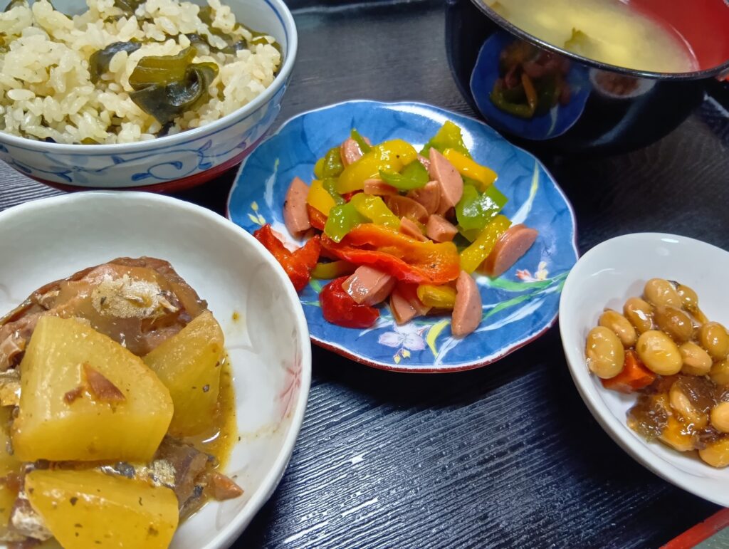 2026年2月8日 / 最終更新日時 : 2026年2月8日 momoi3choume3bell 今日のお昼ごはん さばと大根の味噌煮 パプリカとソーセージのソテー 大豆うま煮 味噌煮 ワカメご飯FacebookXBlueskyHatenaCopy