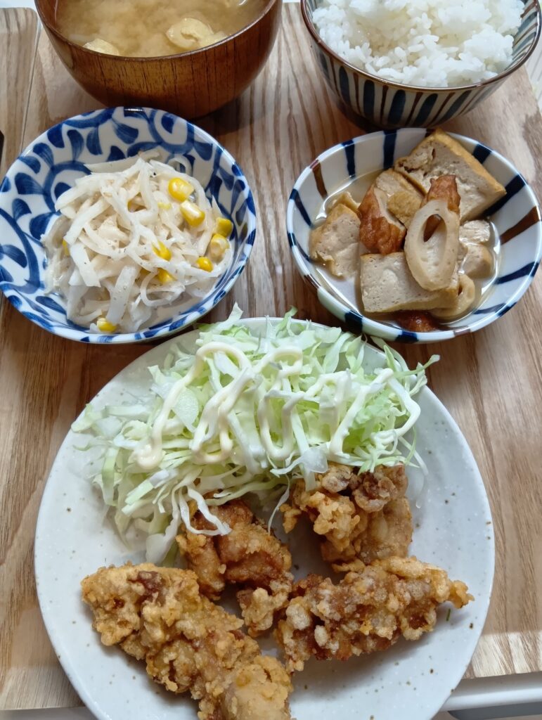 2025年10月31日 / 最終更新日時 : 2025年10月31日 shakujiikouen3bell 今日のお昼ごはん 唐揚げ、大根コーンサラダ、煮物、味噌汁、ご飯FacebookXBlueskyHatenaCopy