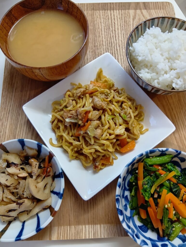 2025年11月12日 / 最終更新日時 : 2025年11月12日 shakujiikouen3bell 今日のお昼ごはん 焼きそば、菜の花ポン酢和え物、れんこん切り干し大根、味噌汁、ご飯FacebookXBlueskyHatenaCopy