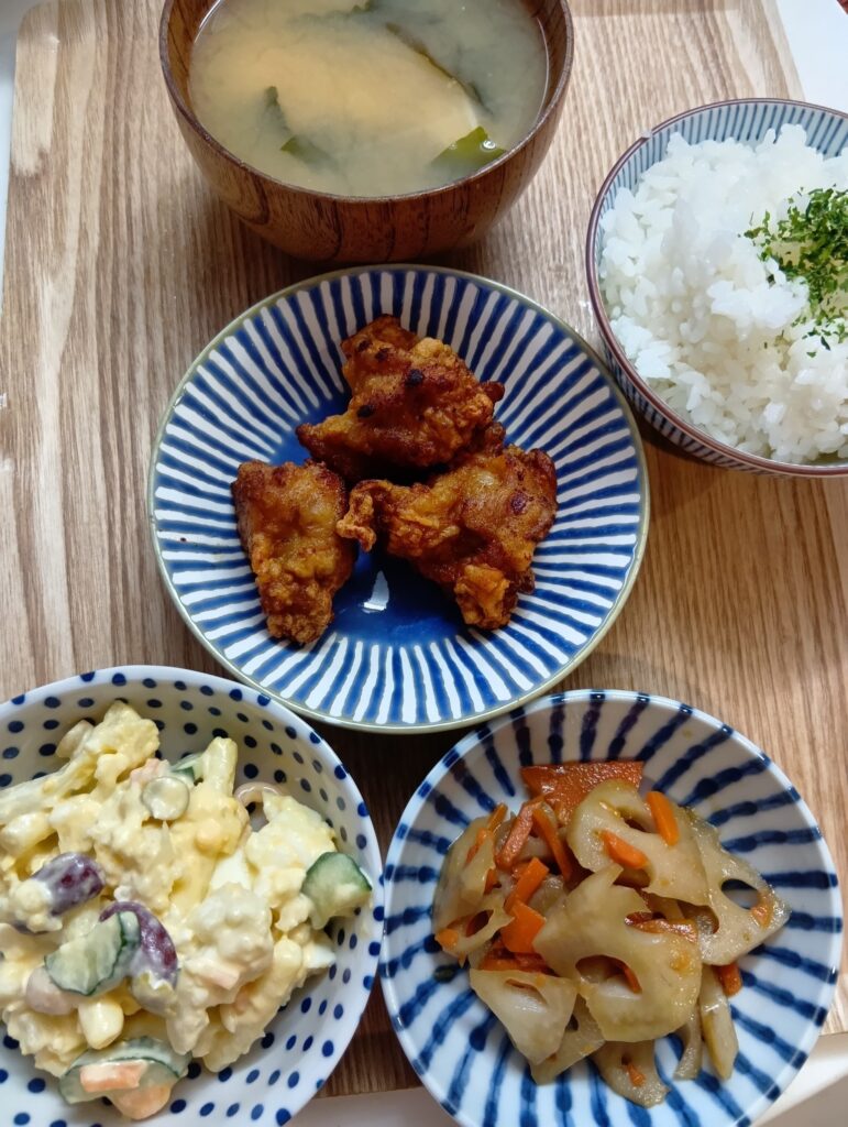 2025年12月3日 / 最終更新日時 : 2025年12月3日 shakujiikouen3bell 今日のお昼ごはん 鶏の唐揚げ、れんこんきんぴら、玉子マカロニサラダ、味噌汁、ご飯FacebookXBlueskyHatenaCopy