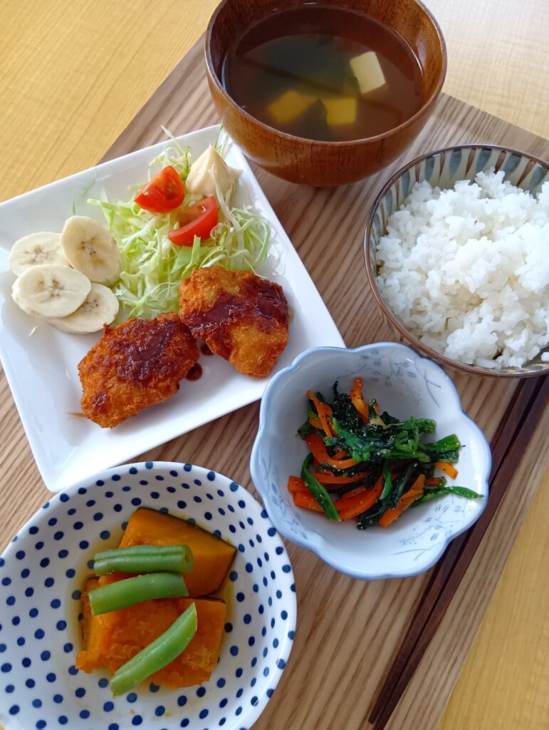 2026年2月18日 / 最終更新日時 : 2026年2月18日 shakujiikouen3bell 今日のお昼ごはん チキンカツ、かぼちゃ煮物、ほうれん草胡麻和え、バナナ、味噌汁、ご飯FacebookXBlueskyHatenaCopy