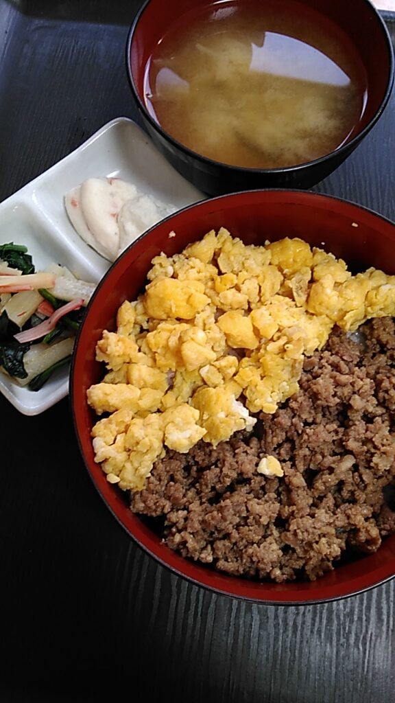 2025年1月2日 / 最終更新日時 : 2025年1月2日 tanashi3bell 今日のお昼ごはん そぼろ丼、ほうれん草おひたし、ポテトサラダ、みそ汁FacebookXBlueskyHatenaCopy