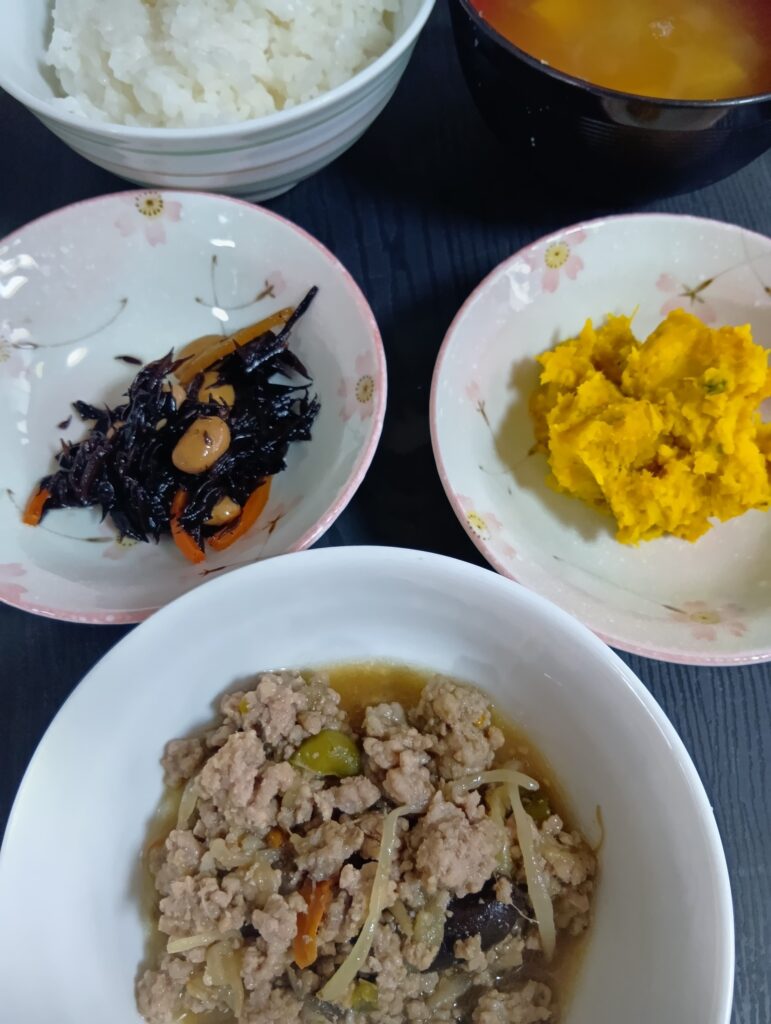 2025年10月16日 / 最終更新日時 : 2025年10月16日 tanashi3bell 今日のお昼ごはん 野菜とひき肉のみそ炒め、かぼちゃサラダ、ひじき煮、みそ汁FacebookXBlueskyHatenaCopy