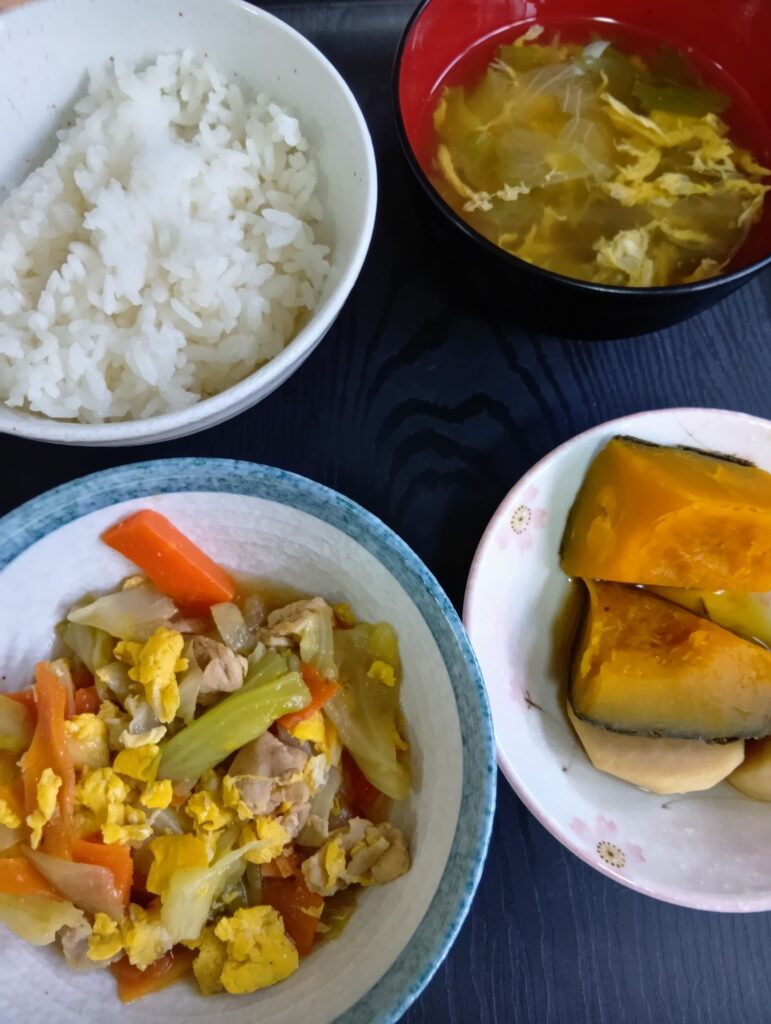 2025年10月28日 / 最終更新日時 : 2025年10月28日 tanashi3bell 今日のお昼ごはん 野菜の炒り卵炒め、かぼちゃと里芋の煮物、キャベツと玉子のコンソメスープFacebookXBlueskyHatenaCopy