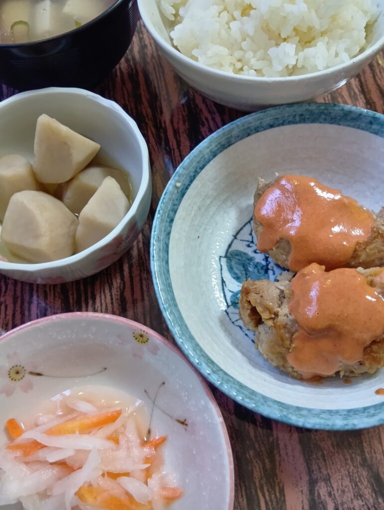 2026年1月10日 / 最終更新日時 : 2026年1月10日 tanashi3bell 今日のお昼ごはん えびハンバーグ、里芋煮、なます、中華スープFacebookXBlueskyHatenaCopy