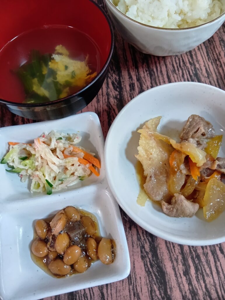 2026年1月28日 / 最終更新日時 : 2026年1月28日 tanashi3bell 今日のお昼ごはん 豚肉の生姜焼き、切干大根のサラダ、大豆のうま煮、たまごスープFacebookXBlueskyHatenaCopy