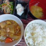 牛しぐれと野菜煮、ナムル、ポテトサラダ、みそ汁