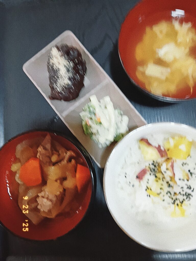 2025年9月23日 / 最終更新日時 : 2025年9月23日 honchomatsu3bell 今日のお昼ごはん 日替わりランチ肉じゃがおはぎマカロニサラダ玉子スープYU3FacebookXBlueskyHatenaCopy