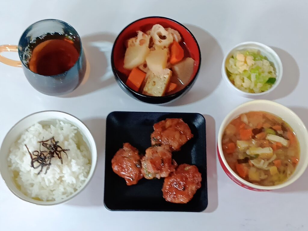 2025年9月25日 / 最終更新日時 : 2025年9月25日 honchomatsu3bell 今日のお昼ごはん 日替わりランチ豚こま団子根菜の煮物野菜たっぷりお味噌汁玉子キャベツサラダごはんFacebookXBlueskyHatenaCopy