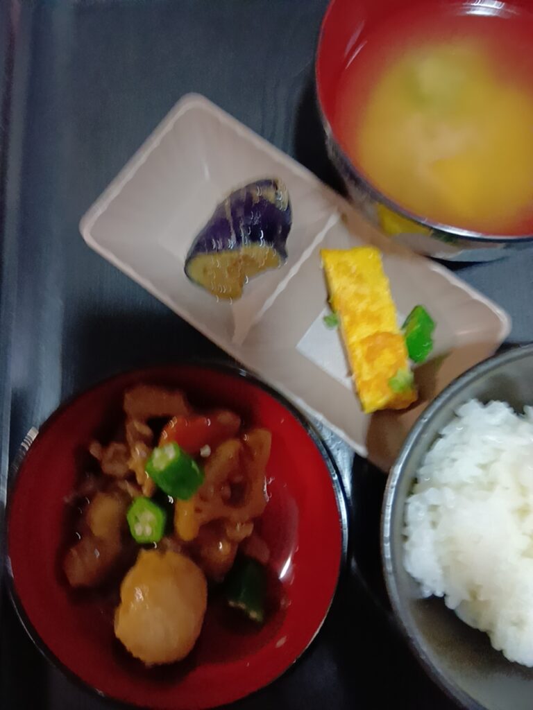 2025年10月25日 / 最終更新日時 : 2025年10月25日 honchomatsu3bell 今日のお昼ごはん 日替わりランチ豚肉と里芋の煮込み玉子焼茄子の煮浸しごはん味噌汁ORFacebookXBlueskyHatenaCopy