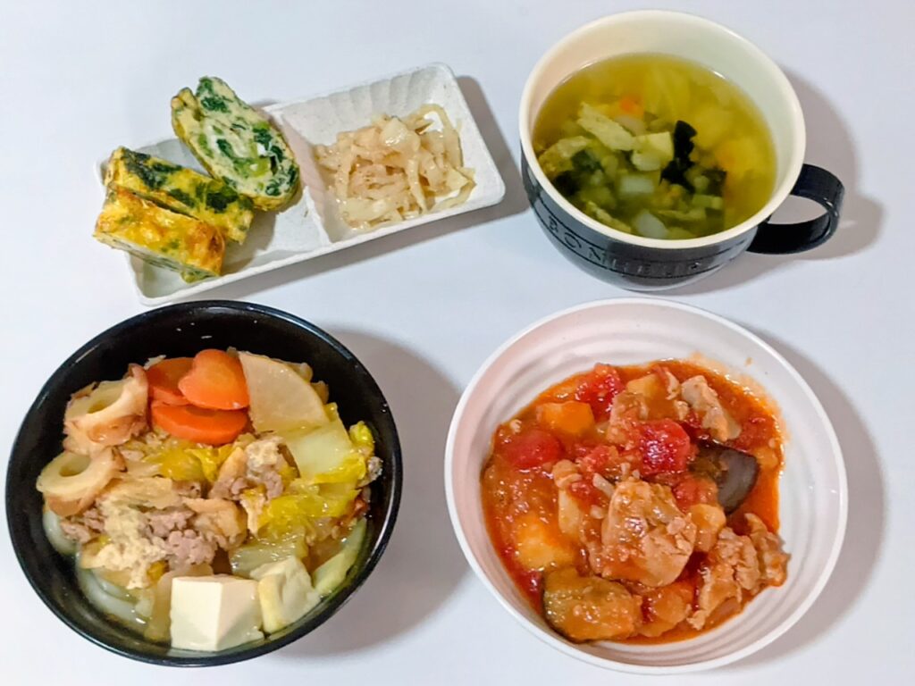 2025年12月23日 / 最終更新日時 : 2025年12月23日 honchomatsu3bell 今日のお昼ごはん 日替わりランチ煮込みうどん鶏野菜トマト煮大根サラダほうれん草玉子焼き和風野菜スープFacebookXBlueskyHatenaCopy