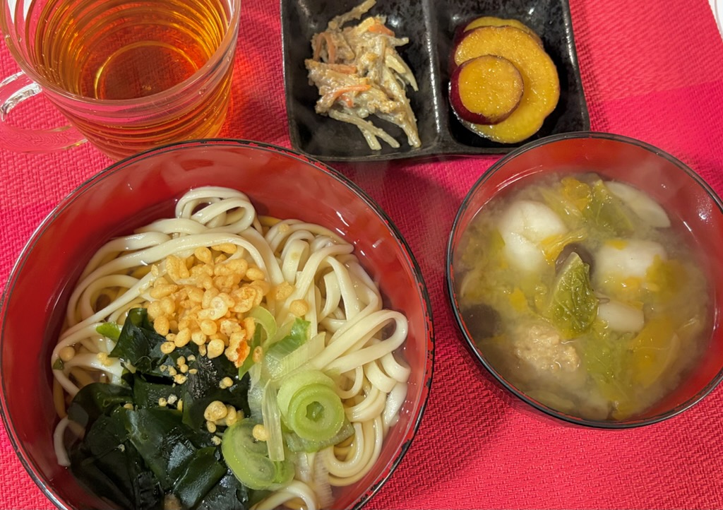 2026年1月8日 / 最終更新日時 : 2026年1月8日 honchomatsu3bell 今日のお昼ごはん 日替わりランチわかめうどんごぼうのマヨ胡麻和えさつまいもの甘露煮野菜とつくねのお味噌汁FacebookXBlueskyHatenaCopy