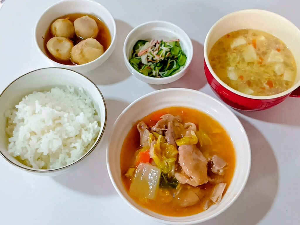 2026年2月10日 / 最終更新日時 : 2026年2月10日 honchomatsu3bell 今日のお昼ごはん 日替わりランチ鶏と野菜のトマトクリーム煮込み和風やさい豆腐スープきゅうりサラダ里芋の煮ものごはんFacebookXBlueskyHatenaCopy