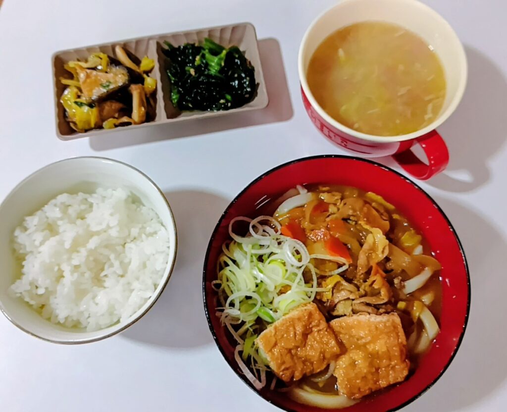 2026年2月27日 / 最終更新日時 : 2026年2月27日 honchomatsu3bell 今日のお昼ごはん 日替わりランチカレーうどん野菜コンソメクリームスープ茄子しそポン酢炒めほうれん草のおひたしごはんFacebookXBlueskyHatenaCopy