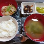 2025年11月25日 / 最終更新日時 : 2025年11月25日 honchomatsu3bell 今日のお昼ごはん日替わりランチ 鶏肉と野菜のクリーム煮込み ピーマン炒め ひじき煮 わかめの味噌汁 ごはん
