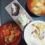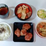 2025年9月25日 / 最終更新日時 : 2025年9月25日 honchomatsu3bell 今日のお昼ごはん日替わりランチ 豚こま団子 根菜の煮物 野菜たっぷりお味噌汁 玉子キャベツサラダ ごはん