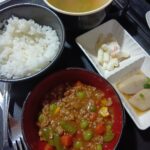 2025年12月25日 / 最終更新日時 : 2025年12月25日 honchomatsu3bell 今日のお昼ごはん日替わりランチ チキンライス 青椒肉絲風炒め 蓮根とオクラのシャキシャキネバネバ胡麻和え ほうれん草とたまごのスープ チョコババロアと長野産ムーンルージュ