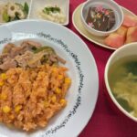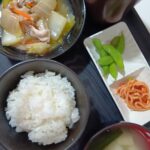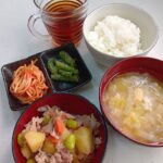 2025年12月24日 / 最終更新日時 : 2025年12月24日 honchomatsu3bell 今日のお昼ごはん日替わりランチ ひき肉と彩り野菜のデミあんかけ マカロニサラダ 里芋の煮物 ご飯 コンソメスープ