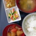 肉じゃが 焼きそは ほうれん草玉子炒め ご飯 味噌汁
