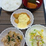 3. 鶏じゃが、きゅうり🥒サラダ🥗、茄子煮浸し、お味噌汁、ご飯