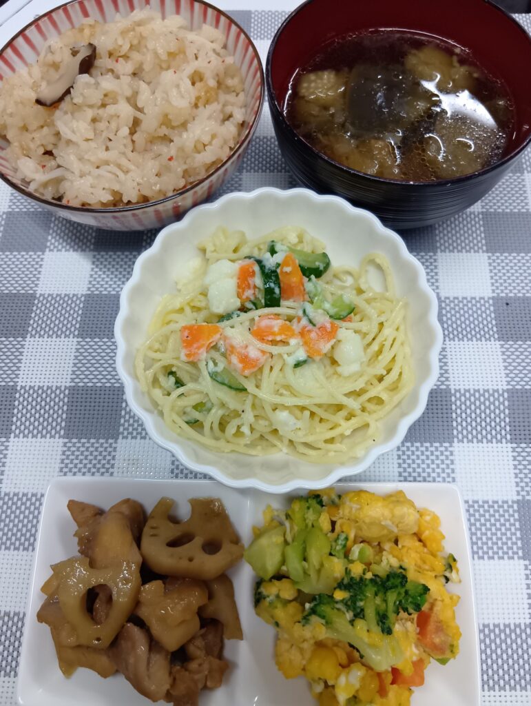 2025年9月25日 / 最終更新日時 : 2025年9月25日 hinokinomori3bell 今日のお昼ごはん パスタサラダ、照り焼き鶏れんこん、玉子ソテー、カニカマ炊き込みご飯、茄子お汁FacebookXBlueskyHatenaCopy