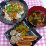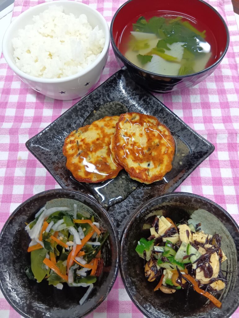 2025年10月20日 / 最終更新日時 : 2025年10月20日 hinokinomori3bell 今日のお昼ごはん 豆腐ハンバーグ、玉子ひじき和え、大根わかめ酢の物、ほうれん草スープ、ご飯FacebookXBlueskyHatenaCopy