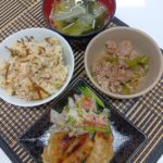 2025年11月3日 / 最終更新日時 : 2025年11月3日 hinokinomori3bell 今日のお昼ごはん かぼちゃ竹輪炒め、ポテト🥔サラダ、肉団子甘酢煮、ご飯、わかめスープFacebookXBlueskyHatenaCopy