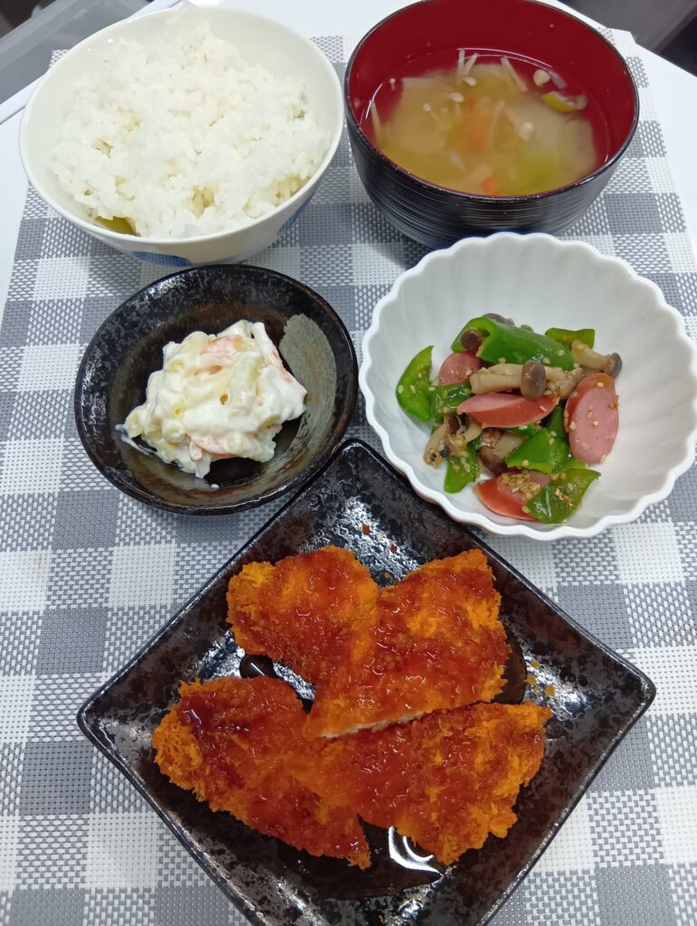 2025年11月16日 / 最終更新日時 : 2025年11月16日 hinokinomori3bell 今日のお昼ごはん サーモンフライ、ピーマンウインナー炒め、マカロニサラダ、コンソメスープ、ご飯FacebookXBlueskyHatenaCopy