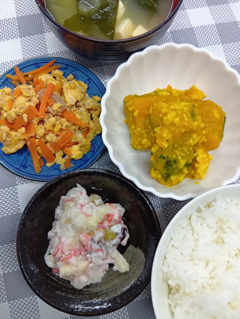 2025年11月18日 / 最終更新日時 : 2025年11月18日 hinokinomori3bell 今日のお昼ごはん かぼちゃとろとろ煮 人参しりしり マカロニサラダ みそ汁 ご飯FacebookXBlueskyHatenaCopy