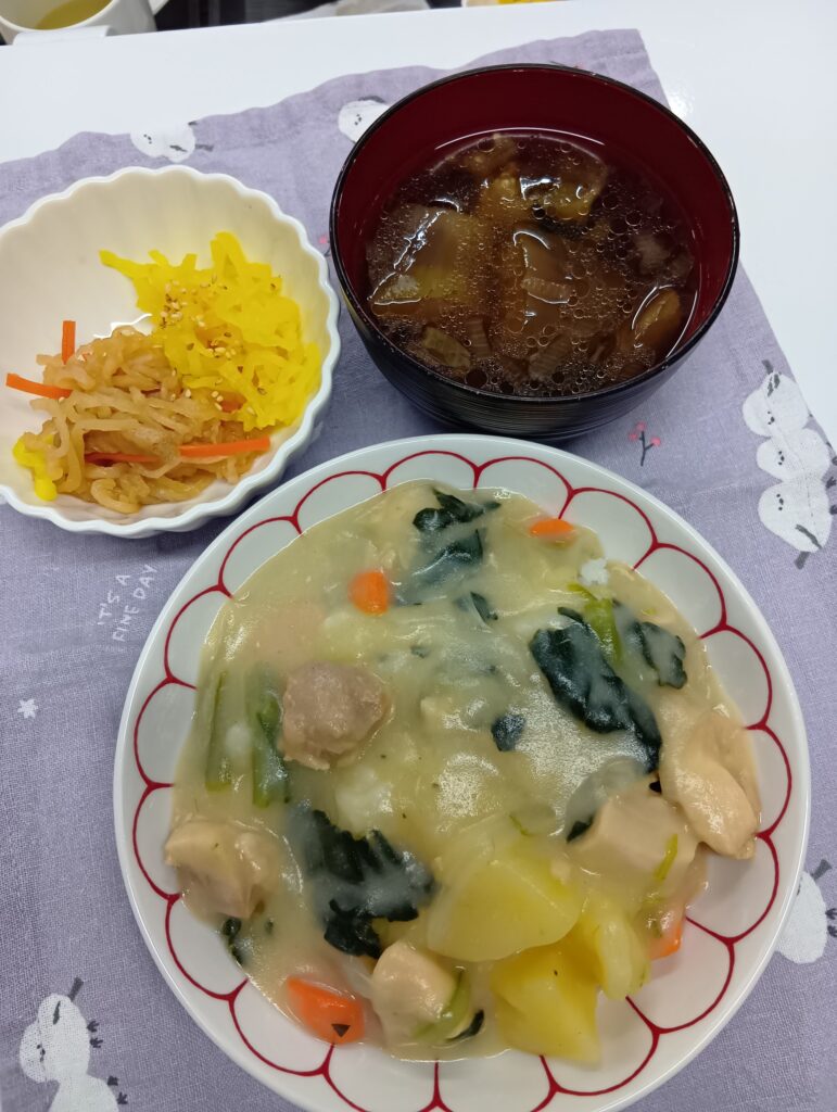 2025年12月6日 / 最終更新日時 : 2025年12月6日 hinokinomori3bell 今日のお昼ごはん チキンクリームシチュー🍲、刻みたくあん、切り干し大根、なす🍆スープ、ライス🍛FacebookXBlueskyHatenaCopy