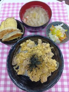 さつまいも🍠かぼちゃの天ぷら、白菜カリフラワーサラダ、親子丼、中華スープ