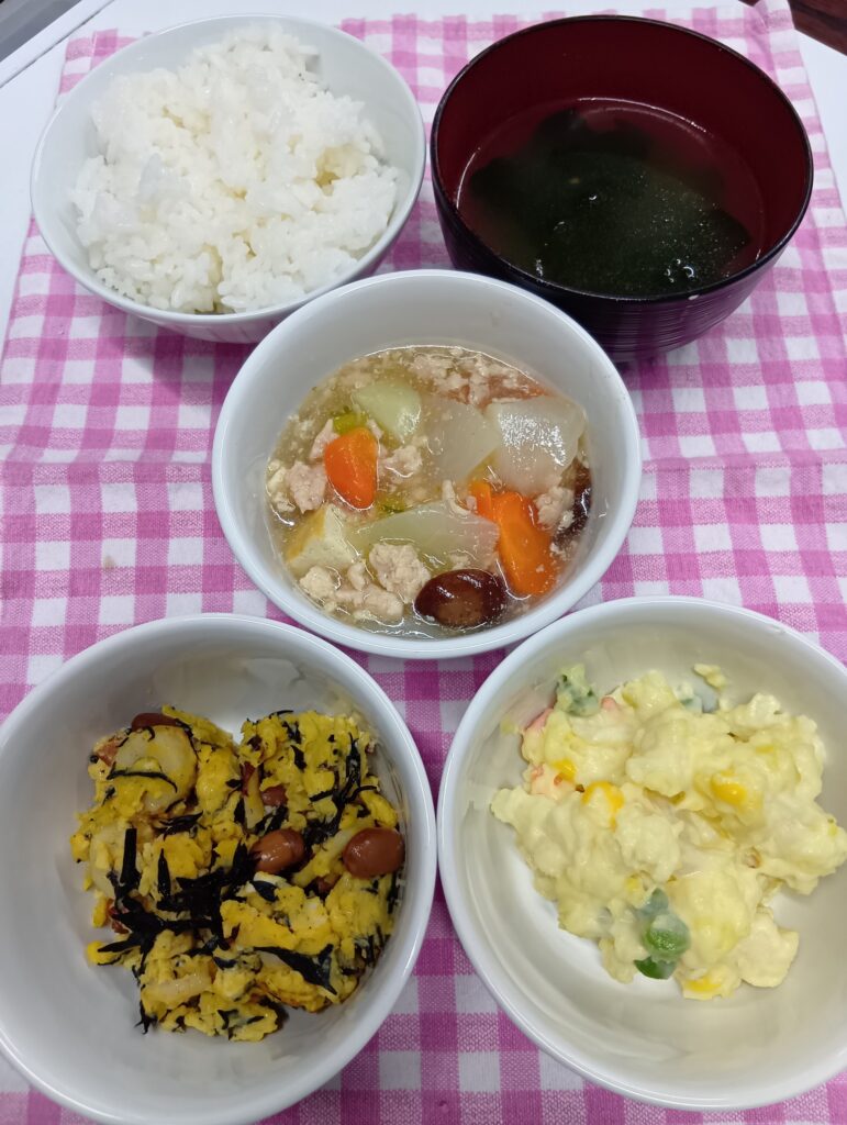 2026年1月6日 / 最終更新日時 : 2026年1月6日 hinokinomori3bell 今日のお昼ごはん 根菜煮、カリフラワーとさつまいも🍠サラダ、竹輪ひじき炒り卵、わかめスープ、ご飯FacebookXBlueskyHatenaCopy