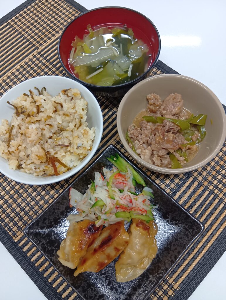 2026年1月17日 / 最終更新日時 : 2026年1月17日 hinokinomori3bell 今日のお昼ごはん チンジャオロース、甘酢餃子🥟、カニカマきゅうり🥒サラダ、昆布おかか炊き込みご飯、白菜スープ🍲FacebookXBlueskyHatenaCopy