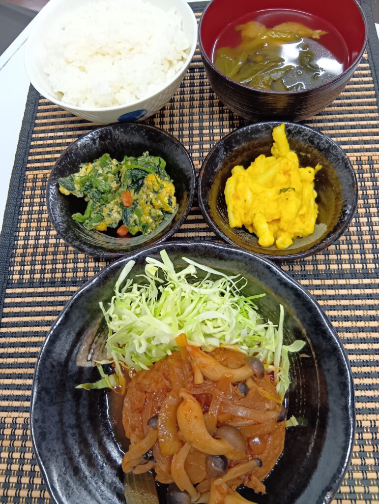 2026年1月26日 / 最終更新日時 : 2026年1月26日 hinokinomori3bell 今日のお昼ごはん きのこ煮込みハンバーグ、玉子ほうれん草ソテー、かぼちゃマカロニサラダ、小松菜お汁、ご飯FacebookXBlueskyHatenaCopy