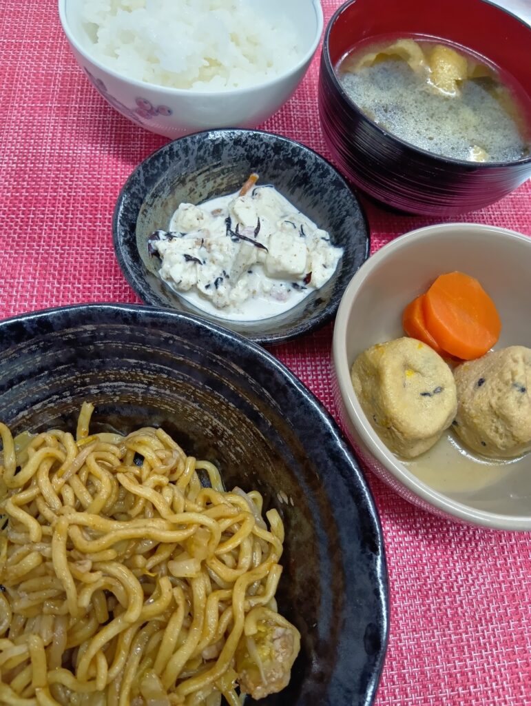 がんもの煮物 豆腐ごまサラダ 焼きそば