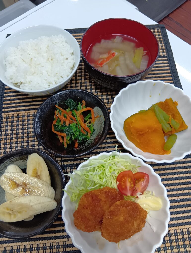 2026年2月18日 / 最終更新日時 : 2026年2月18日 hinokinomori3bell 今日のお昼ごはん チキンカツ、キャベツ千切りミニトマト🍅添え、かぼちゃ煮物、ほうれん草ごま和え、バナナ🍌、中華スープ、ご飯FacebookXBlueskyHatenaCopy
